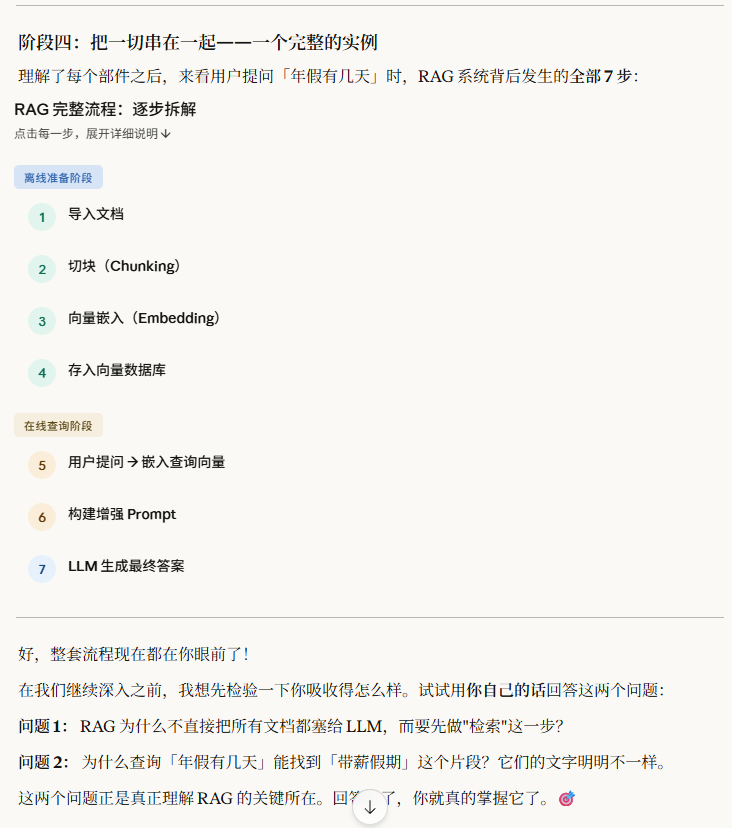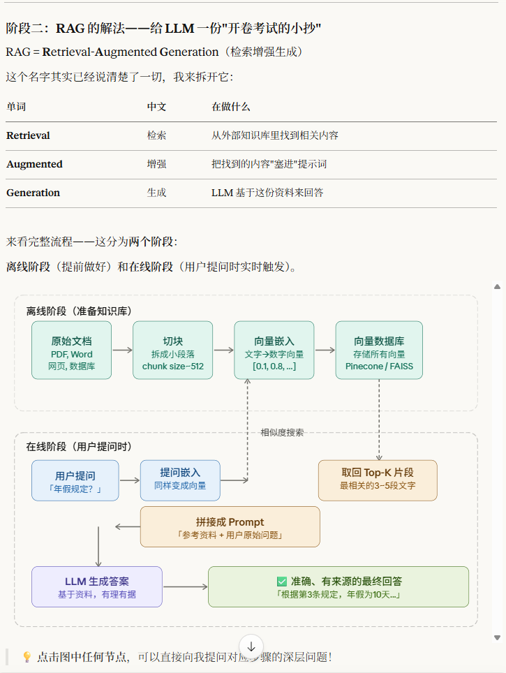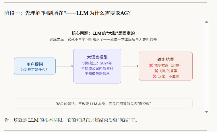 提问:请以初学者的视角,一步步向我演示 RAG 的核心概念是如何运作的,好让我能一次性彻底掌握它。