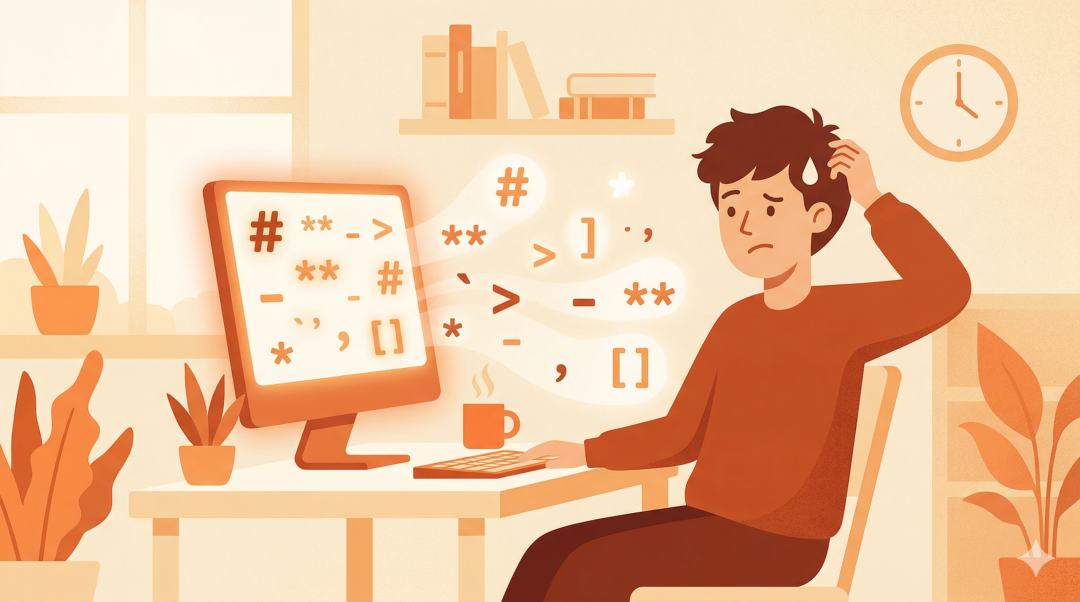 别慌。Markdown可能是你这辈子遇到的最简单的"语言",因为它一共就那么几个核心符号: