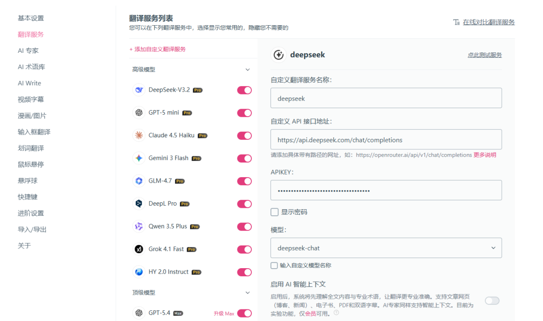 翻译服务,添加自定义翻译服务,填入API接口地址: