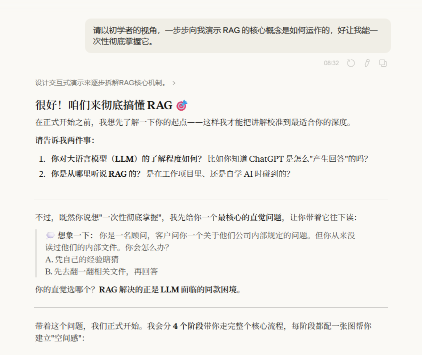 Claude 有一个名叫'学习模式'的功能 你可以用它逐步学习任何东西,就像有个私人教师。